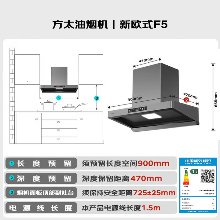 方太(FOTILE)F5欧式顶吸抽油烟机京东自营旗舰店27风量静音无油网变频大吸力以旧换新国家补贴20% CXW-358-F5