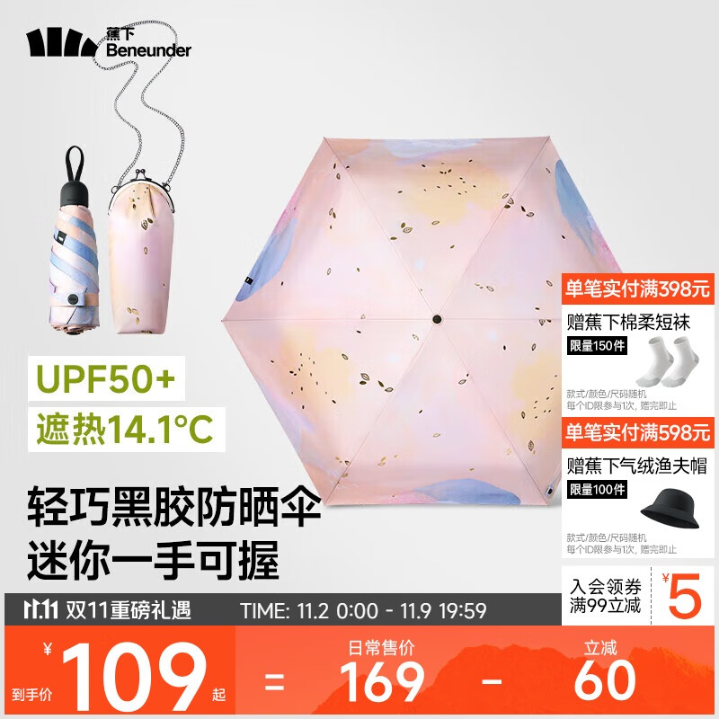 蕉下(beneunder)防紫外线遮阳伞五折口袋黑胶晴雨伞防晒伞BM665叶舞