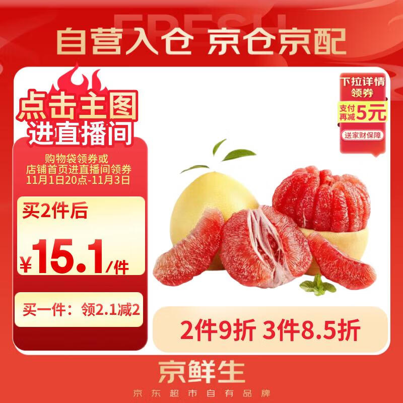 京鲜生 福建红心柚子 2粒 单果1.5-2.5斤小果 生鲜水果