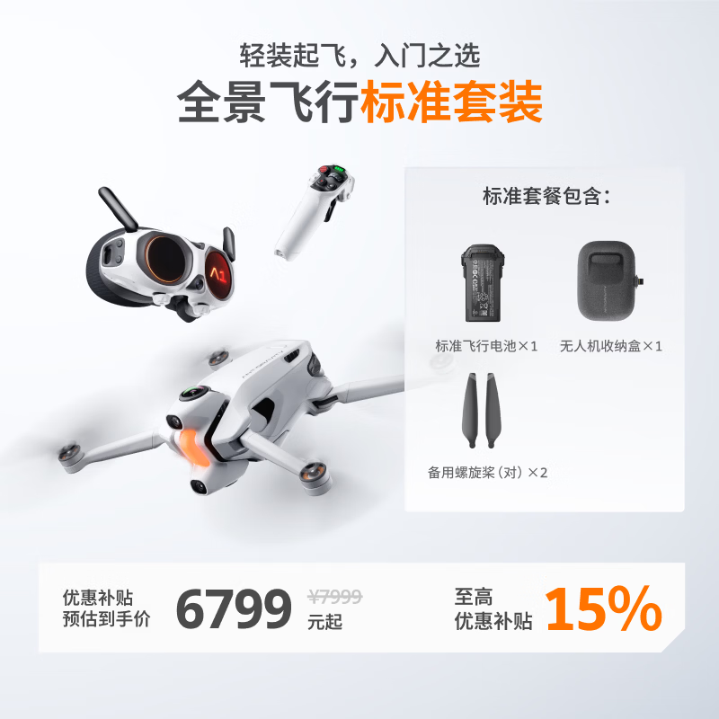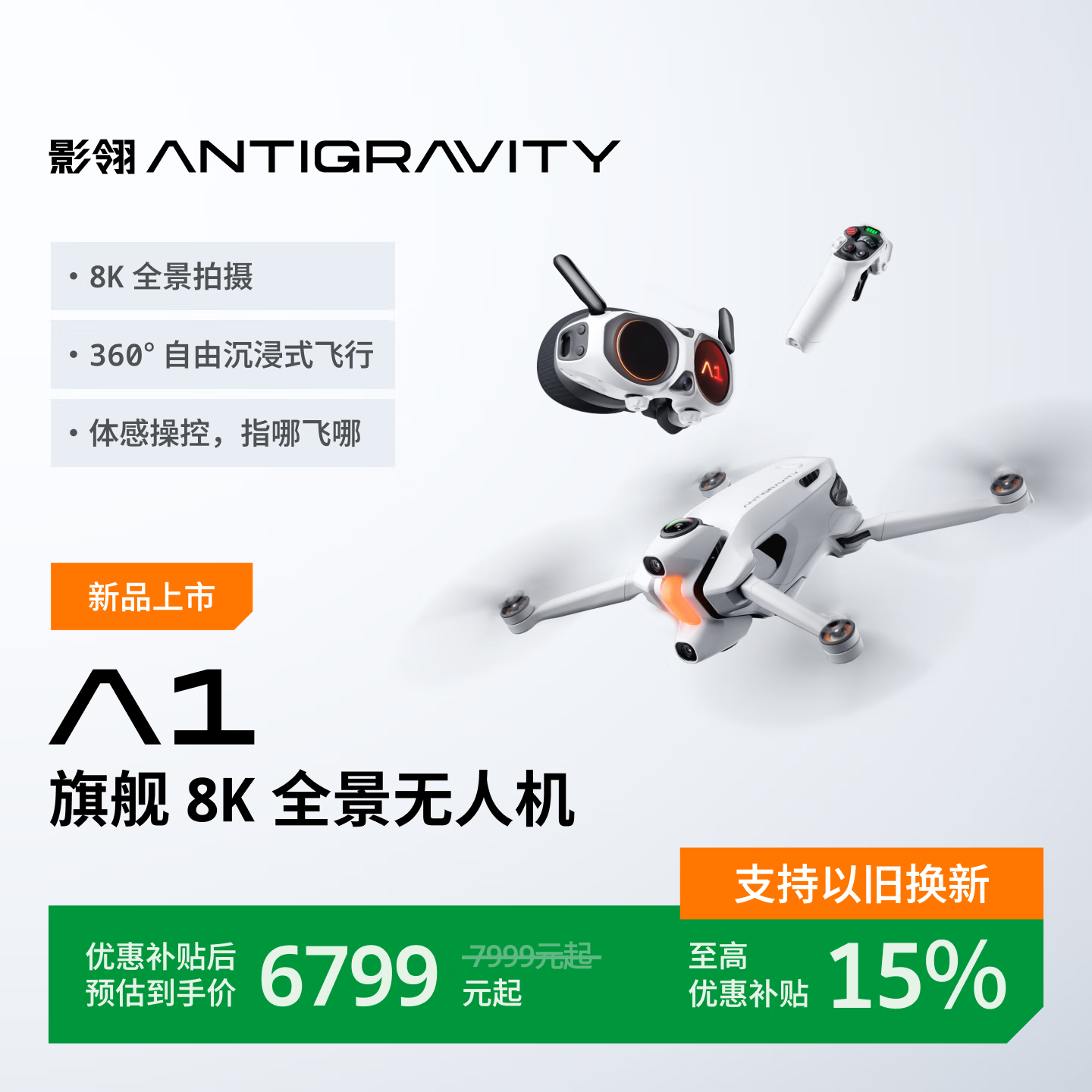 影翎【新品上市】全景无人机 A1 旗舰 8K 超清画质 360° 全景 飞行眼镜 体感操控 轻巧便携航拍机 标准套装 官方标配(不含卡) 无安心飞 不含充电器