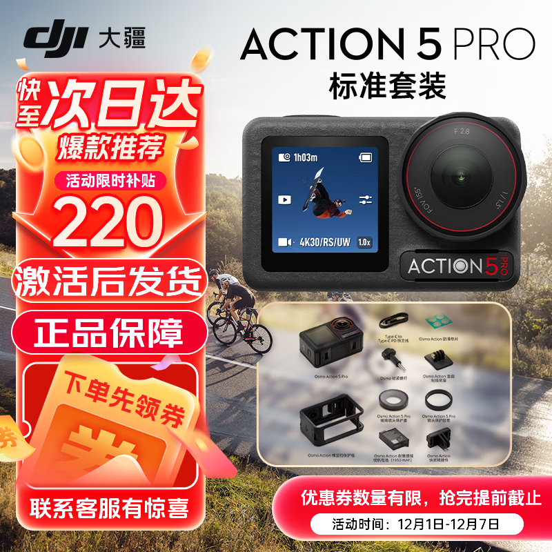 大疆action5pro超旗舰画质运动相机 大疆action5pro 户外骑行潜水徒步 Action 5 Pro 标准套装 官方标配【现货速发】