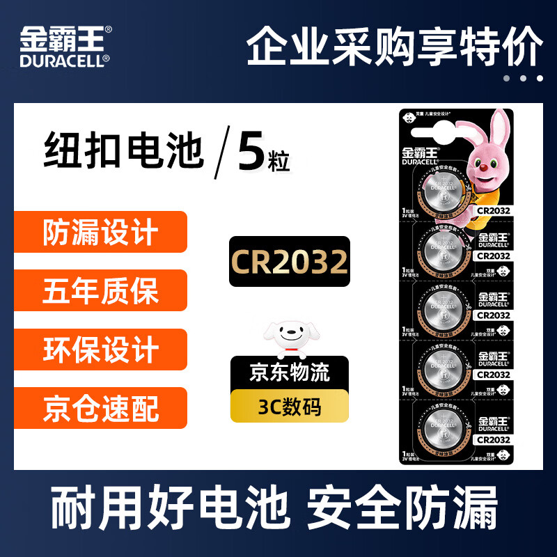 金霸王(Duracell)CR2032纽扣电池5粒装 3V锂电池电子AirTag电池 适用奥迪汽车钥匙/电脑主板/电子秤/手表