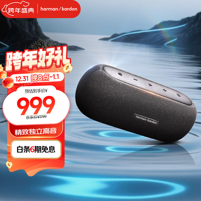 哈曼卡顿 LUNA 便携蓝牙音箱 赛道扬声器 超长续航 独立高音单元 IP67防水防尘音响 新年礼物推荐 黑色