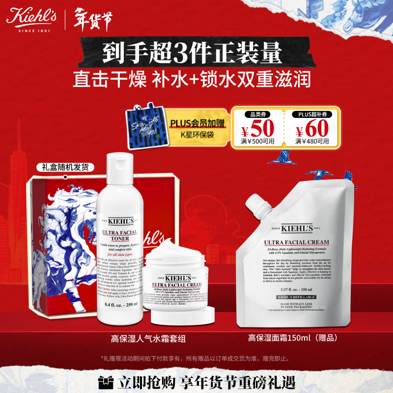 科颜氏(Kiehl's)高保湿水250ml+面霜50ml护肤品补水保湿 元旦礼物礼盒