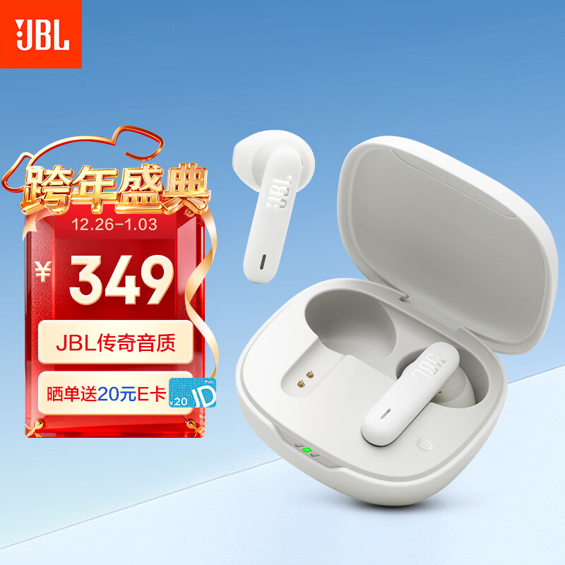 JBL WAVE FLEX 2 真无线蓝牙耳机 半入耳式音乐耳机 通话降噪 游戏耳麦 元旦新年礼物 珍珠白