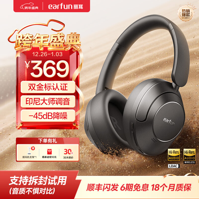 EarFun 丽耳【达人推荐】Wave Pro 头戴式蓝牙耳机双金标认证音质AI通话降噪80小时超长续航无线有线电脑 【新版本】5.4蓝牙 暗夜黑 支持7天试用|18月质保|顺丰闪发