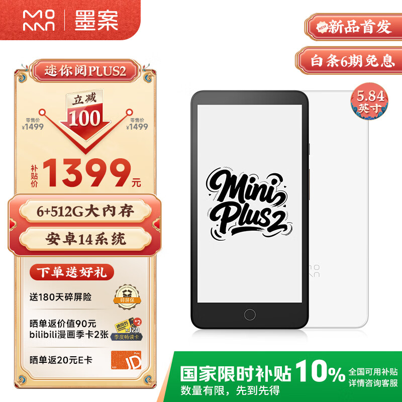 墨案电纸书Mini Plus2【重磅新品】 5.84英寸墨水屏 霜魄白 电子书阅读器 轻巧便携 口袋通勤 6+512G