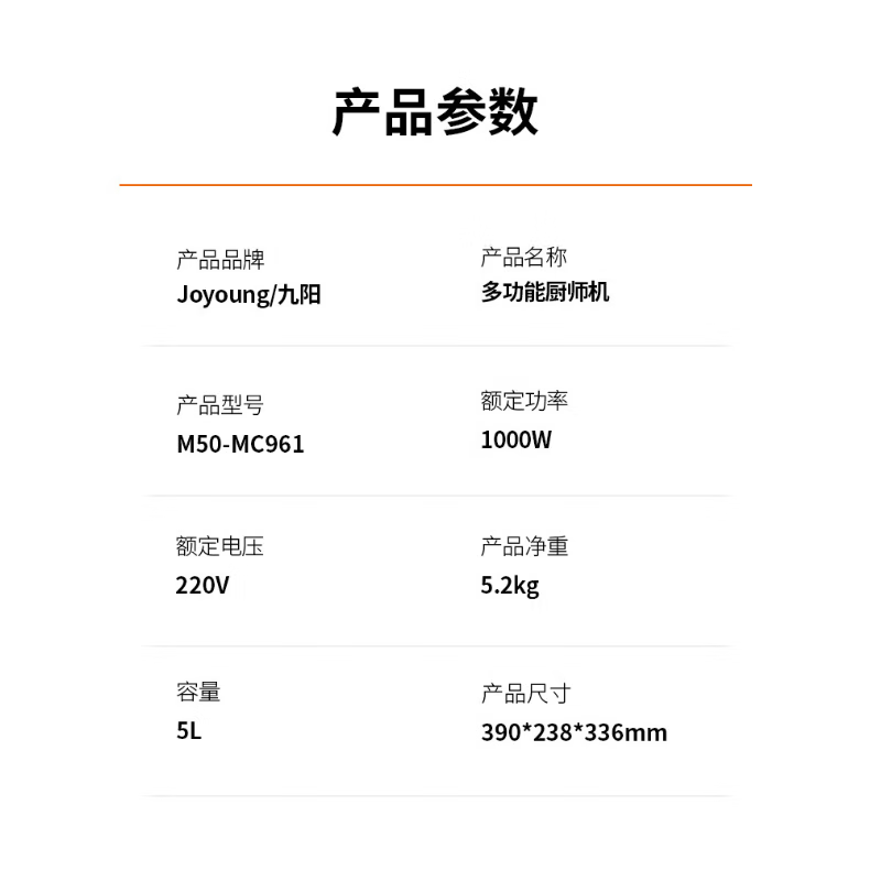 九阳(Joyoung)厨师机和面机揉面机家用打蛋器奶油全自动料理机多功能M50-MC961
