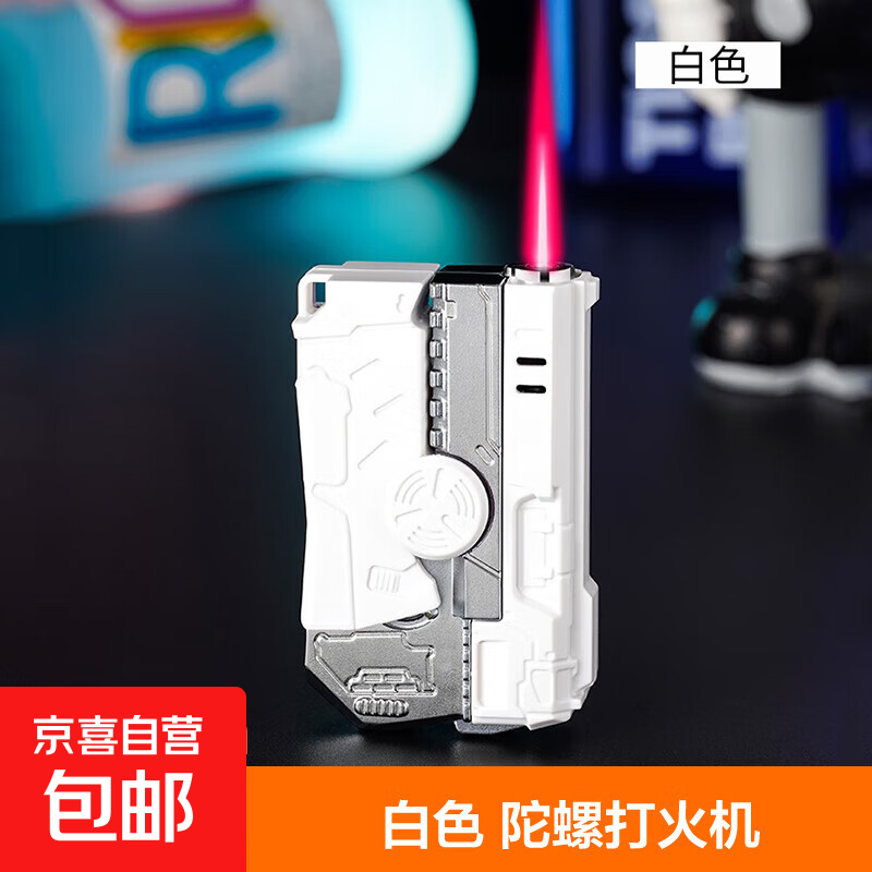 网红新款萝卜枪折叠旋转回膛陀螺防风打火机解压玩具3D重力小枪 白色 单机 1个