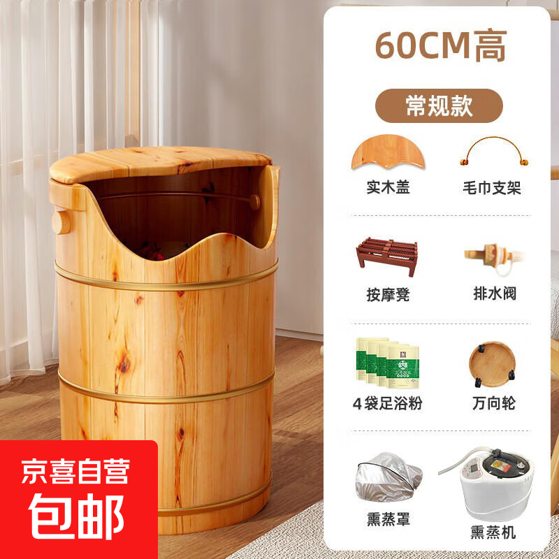 香柏木泡脚桶过小腿木桶熏蒸桶家用实木过膝足浴桶高深桶保温洗脚 60cm高单桶+熏蒸机+熏蒸罩+全套配置+艾草120包
