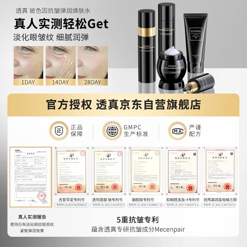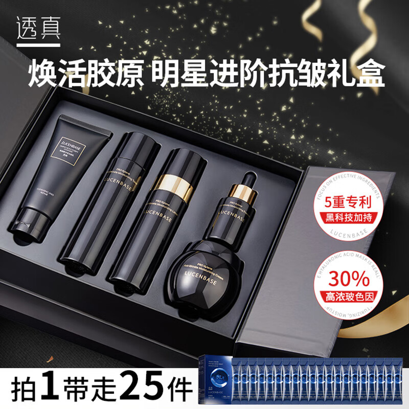 透真抗皱水乳套装(30%玻色因黑绷带 淡纹紧致 提拉保湿护肤品套装)