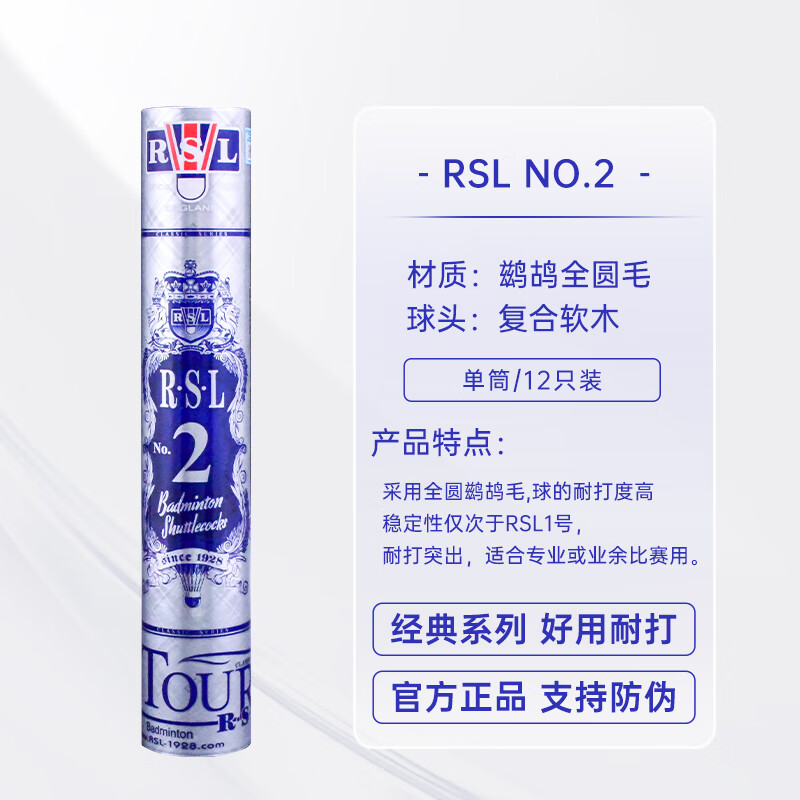 亚狮龙(RSL)羽毛球耐打日常比赛训练羽球12只装 亚狮龙2号球 1筒 77速 单筒装