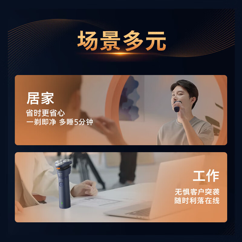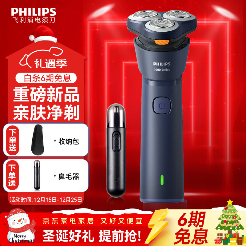 飞利浦(PHILIPS)【圣诞节礼物】剃须刀电动男士刮胡刀 进口刀头胡须刀全身水洗干湿两用电须刀须刨送男友礼物 升级新1系S1881【亲肤闪充 更久续航】
