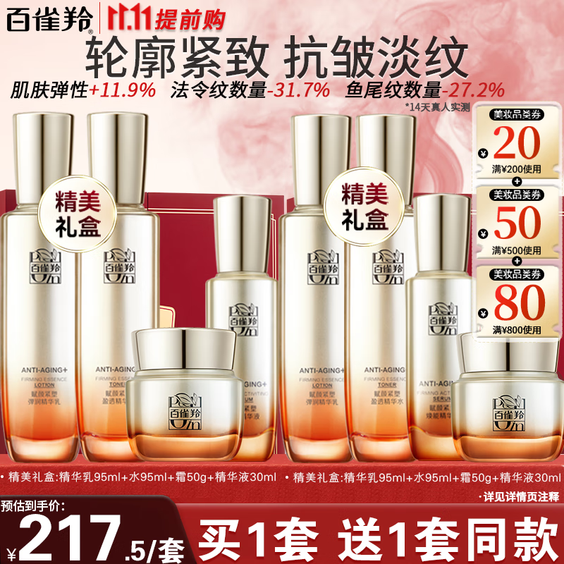百雀羚(PECHOIN)套装 赋颜紧塑水乳霜精华套装 胶原紧致爽肤水乳液面霜生日礼物女 水95ml+乳95ml+面霜50g+精华液30ml