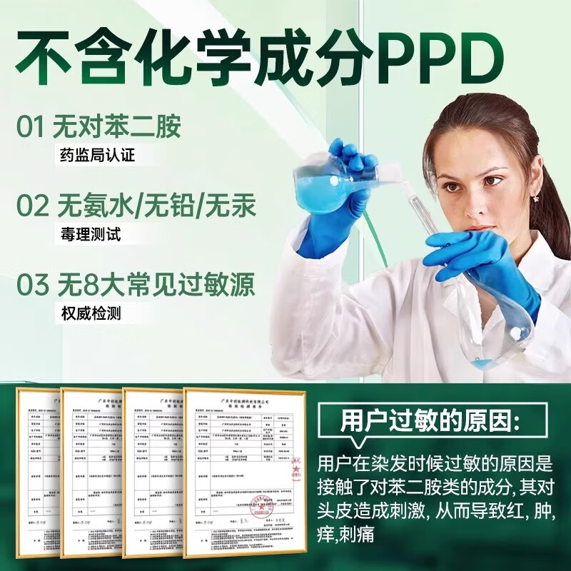明字堂不含对苯二胺染发剂纯天然植物无刺激不沾头皮染发膏盖白发自然黑