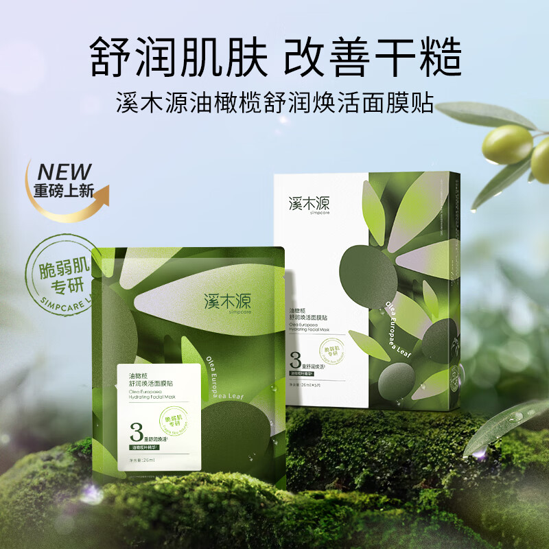 溪木源油橄榄舒润肌肤面膜改善干燥面膜贴送男女礼物 油橄榄面膜10片
