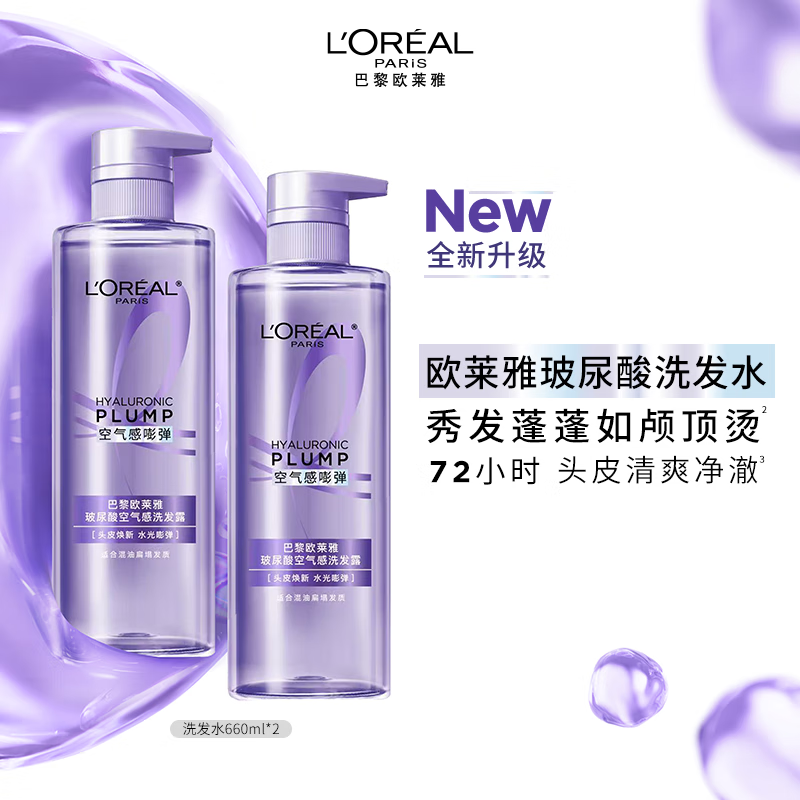 欧莱雅玻尿酸洗发水660ml*2清爽控油蓬松洗发露套装去油洗头水