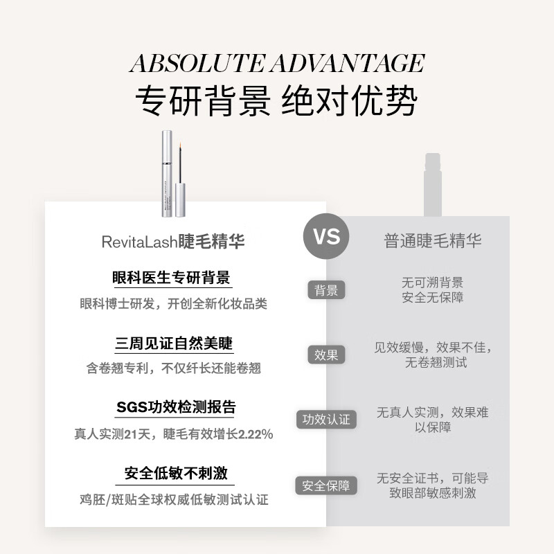 REVITALASH睫毛精华液1ml浓密纤长睫毛卷翘温和不刺激美国进口