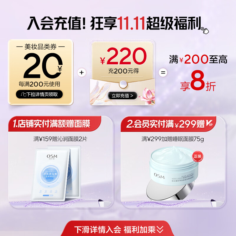 欧诗漫(OSM)珍珠透明质酸钠水光补水面膜保湿滋润贴片面膜【专享】 水光面膜30片