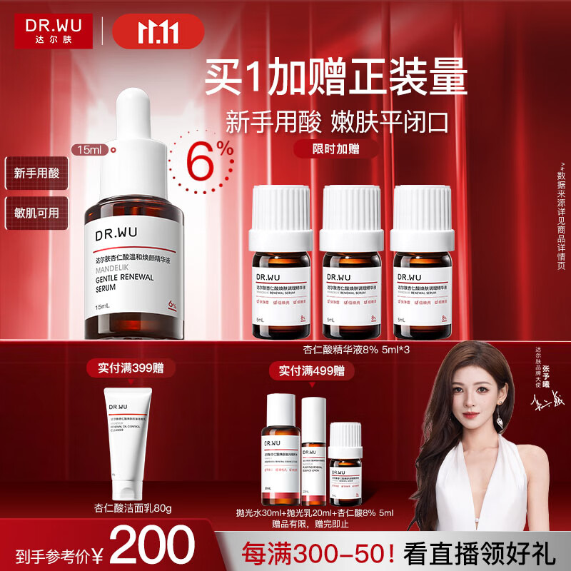 达尔肤(DR.WU)杏仁酸精华6%15ml三重酸果酸细腻肌肤去角质闭口收毛孔提亮护肤