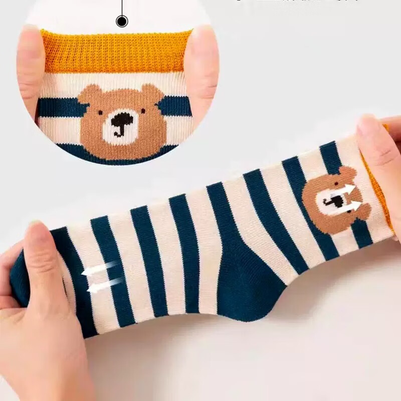 诺米团儿童袜子男童女童秋冬季袜子亲肤透气中筒袜短袜休闲袜 卡通小熊款混色 10双 10岁以上 (XL)