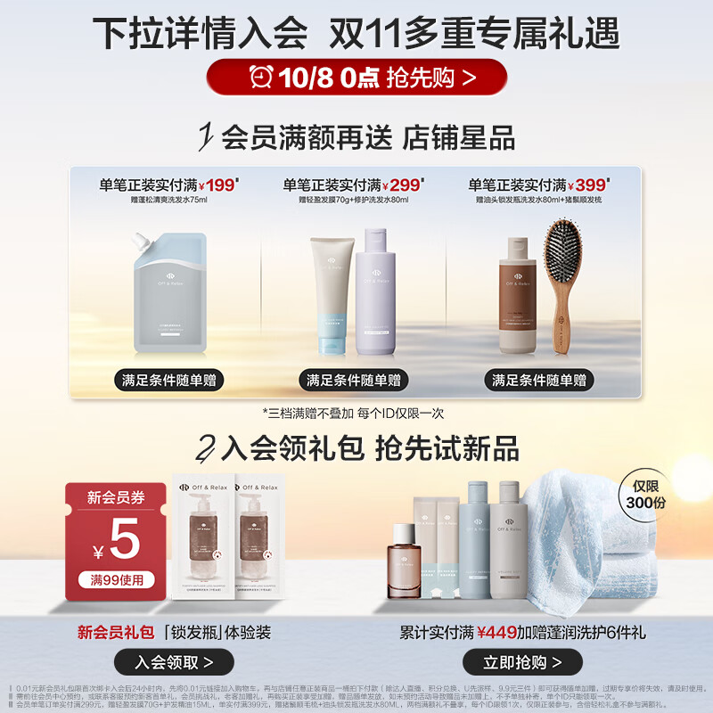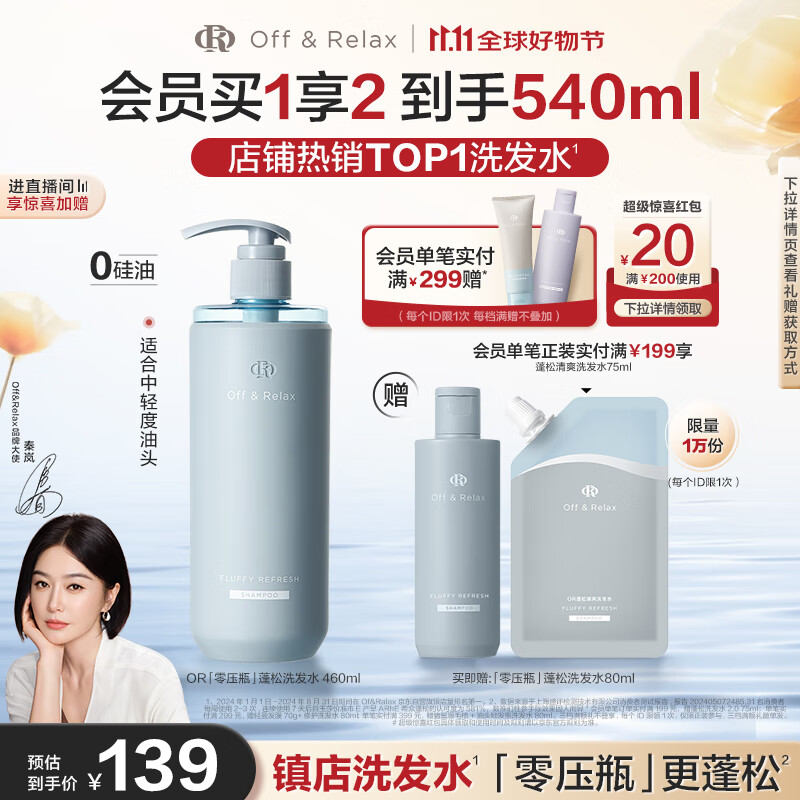 Off&Relax【秦岚同款】蓬松零压瓶洗发水460ml or改善油扁塌控油持久