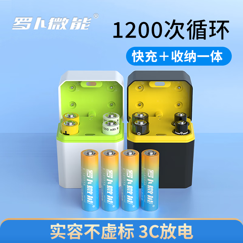 罗卜微能5号7号可充电电池仓高耗电套装快充适用儿童玩具游戏手柄血压计指纹门锁CCD相机闪光灯鼠标键盘 混充充电仓+4节5号快充套装【黑色-送快充线】