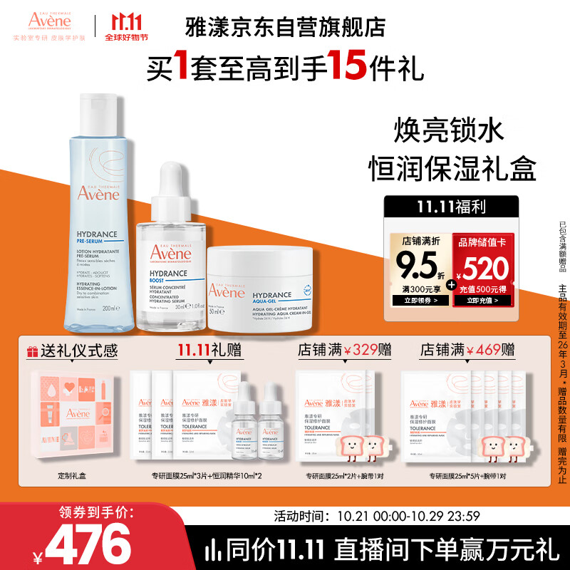雅漾(Avene)恒润保湿护肤套装礼盒小蛮腰200ml+精华30ml+凝露50ml11.11抢先购