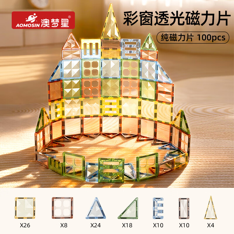 澳梦星彩窗磁力片儿童玩具钻面3-6岁磁力积木纽奇男女孩生日礼物mini款 7.5cm丨钻面磁力片100片-大自然色