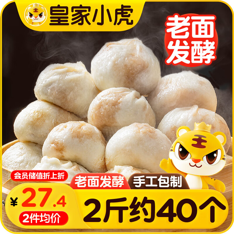 皇家小虎嵊州风味手工老面小笼包2斤/约40个 早餐包子半成品食品 源头直发