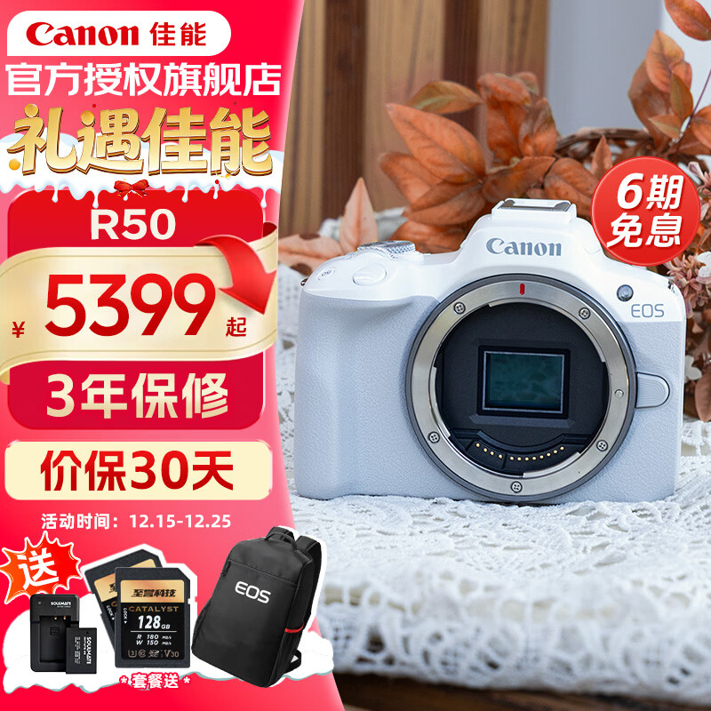 Canon佳能r50 入门级微单反 半画幅数码相机 4k美颜小巧便携送礼 R50拆单机身白+(128G卡*2+背包+电池) 官方标配(赠6期免息)
