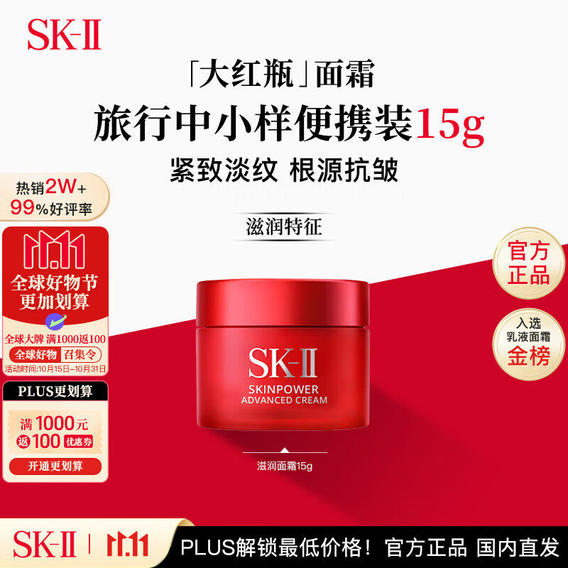 SK-II大红瓶面霜15g保湿滋润紧致 sk2进口护肤品 女生生日礼物双11