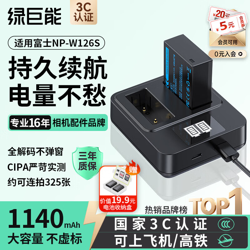 绿巨能(llano)适用富士X-T50相机NP-W126S电池充电器X-T30 II/xm5/xs10/x100vi/xt20/XE4/XM5/A5/X-Pro3微单电池