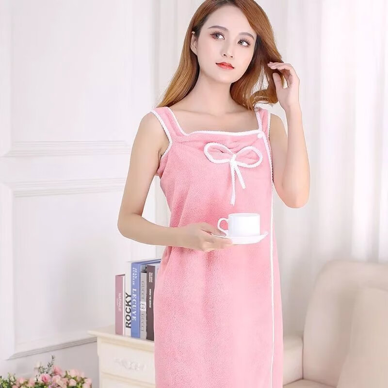 【现发】可穿浴巾女吊带浴袍浴裙加厚穿戴式浴巾背心式浴巾浴巾大 浅粉色【蝴蝶结款】 大码【130-160斤可穿】