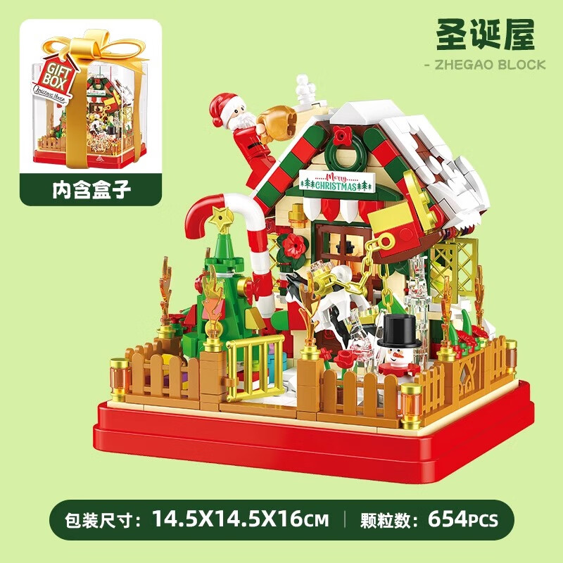 哲高圣诞节礼物创意积木拼装圣诞树圣诞老人diy手工玩具送男女生节日 礼盒圣诞屋【精美摆件】654PCS