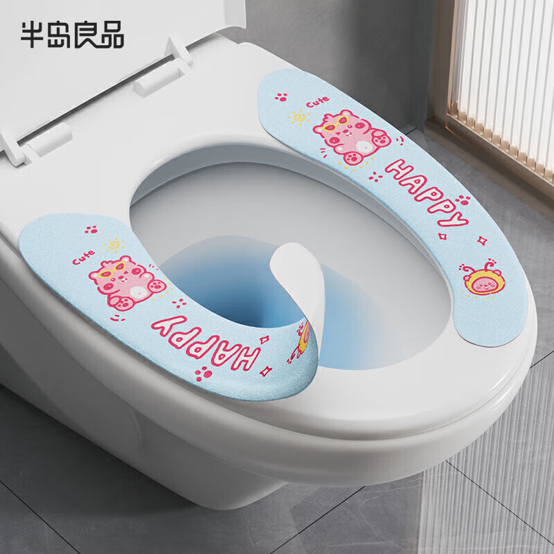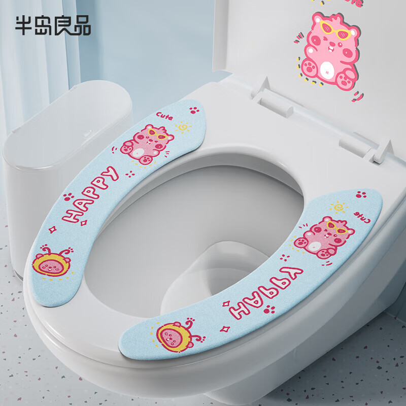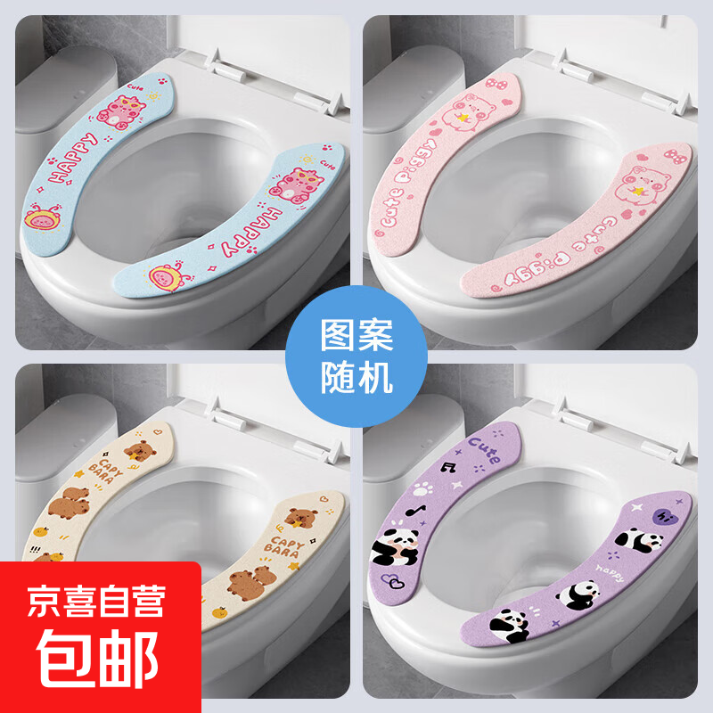 马桶坐垫贴粘贴式加绒防水马桶垫子可水洗马桶圈 粘贴马桶垫蓝色(图案随机) 1个