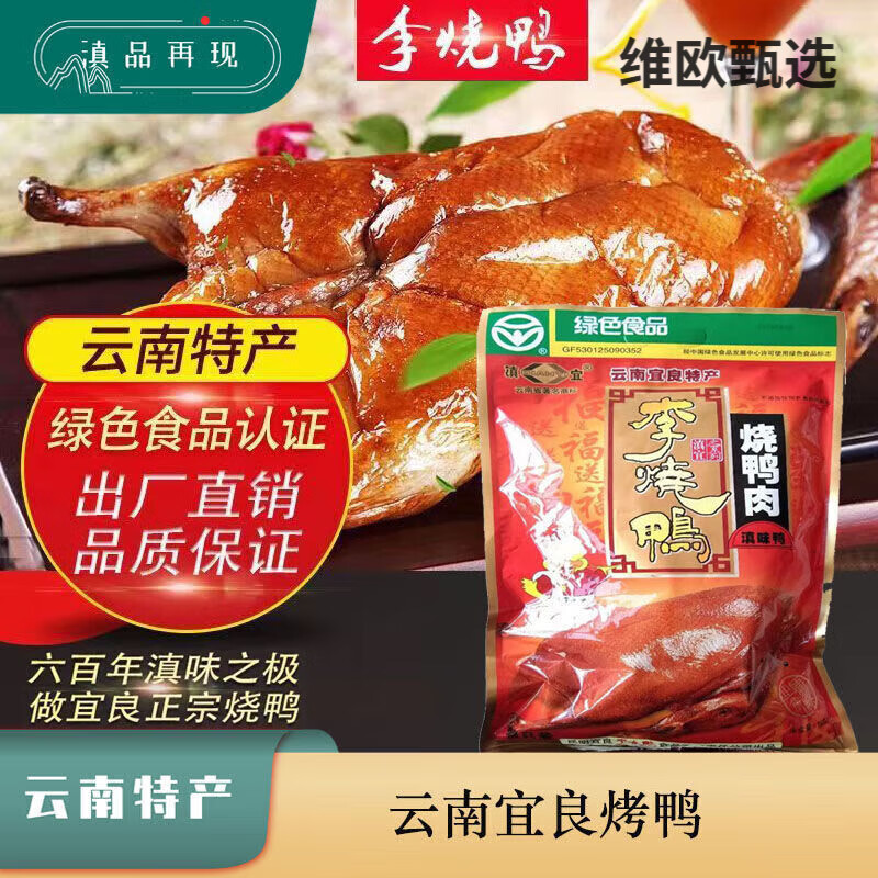 宜良烤鸭云南特产宜良李烧鸭小麻鸭卤味鸭美食鸭肉整只鸭 宜良李烧鸭滇味鸭半只360g