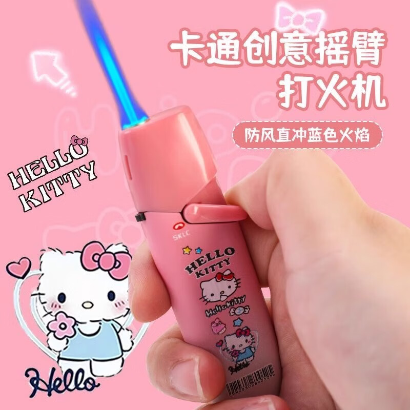 长誉摇臂防风打火机卡通炫酷库洛米网红直冲蓝焰充气送情人节礼物 【玉桂狗】 2支