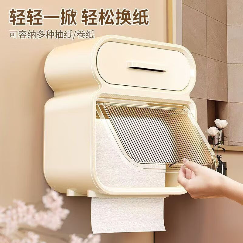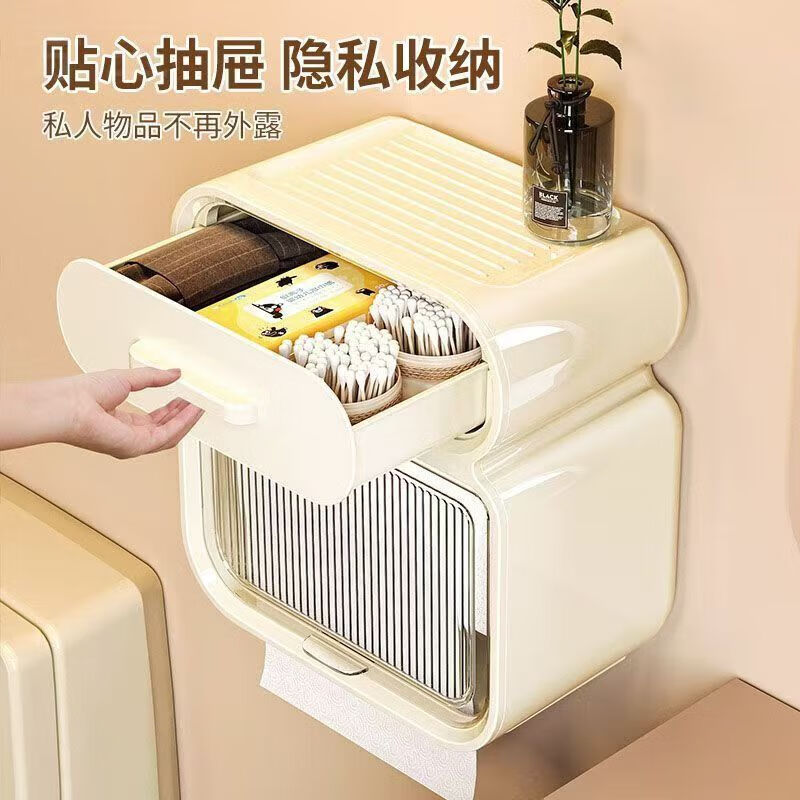 卫生间厕纸盒厕所纸巾盒抽纸盒卫生纸置物架卷纸防水壁挂式免打孔 奶油白 2层 17.5cm 卫生间纸巾盒