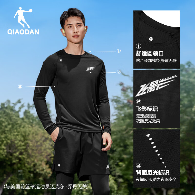 乔丹飞影PB速干长袖T恤男士2025秋季上新透气健身训练跑步运动上衣