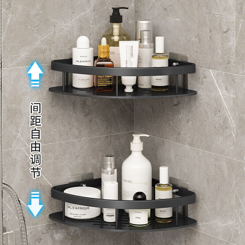 【百年正和】浴室三角置物架子壁挂收纳转角免打孔卫生间用品多层 单层-银色三角(免装胶贴)