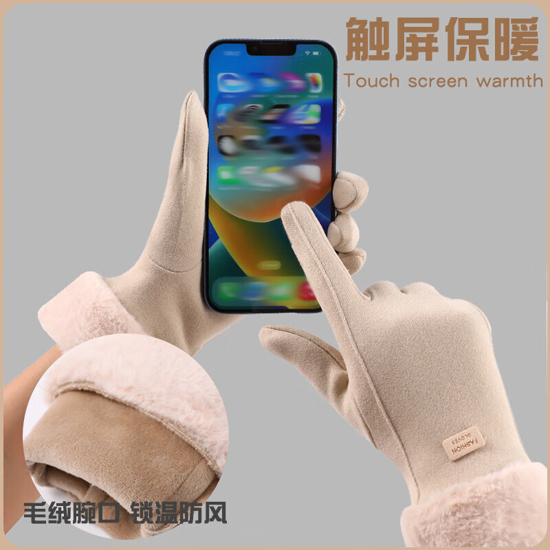 手套女冬季骑车保暖防风防寒触屏电动车加绒开车女士冬天骑行手套 粉色 均码