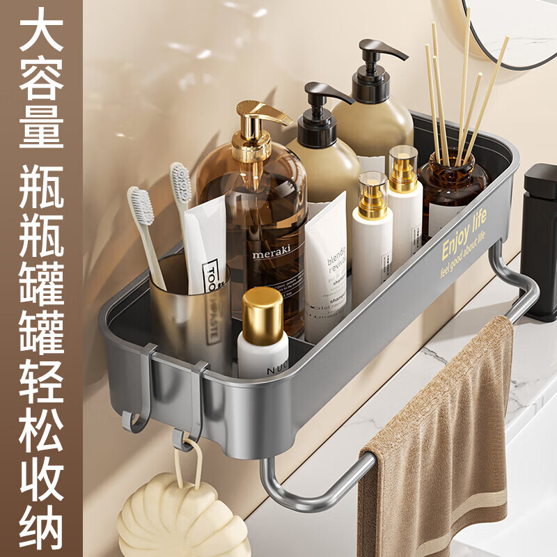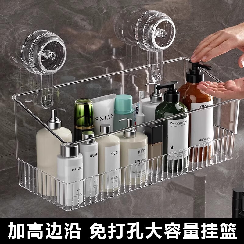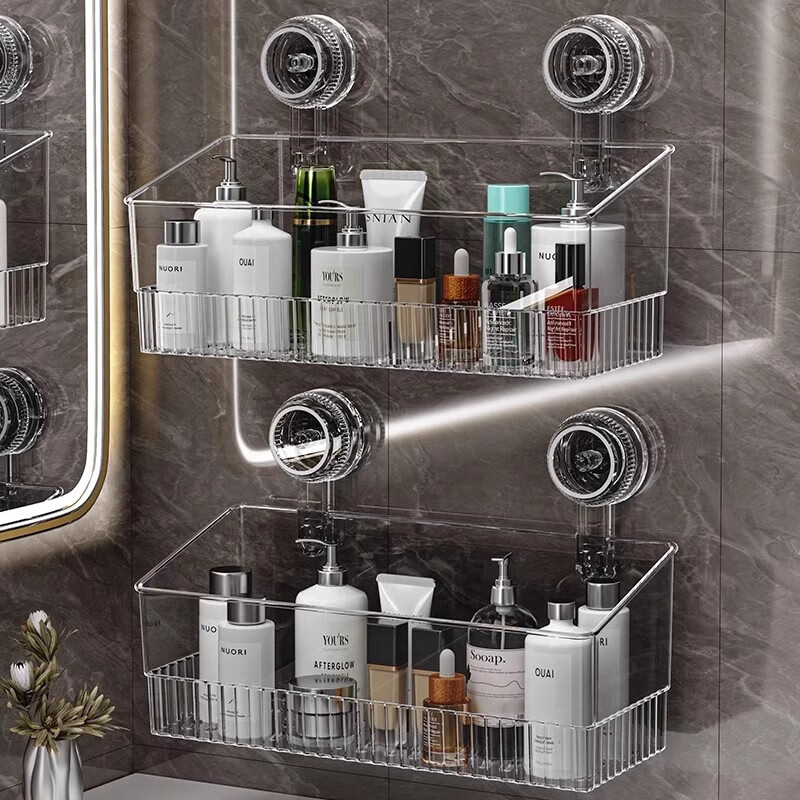 吸盘置物架厨房浴室卫生间免打孔壁挂式墙上收纳神器洗漱台收纳盒 浅灰色 1层 1个