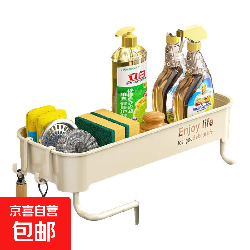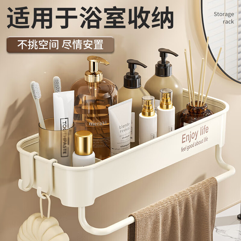免打孔加厚壁挂式浴室沥水架多色可选收纳架家用置物架 K702方形带杆款-奶白色