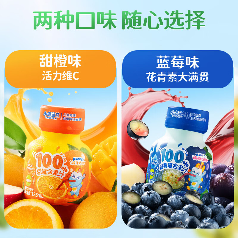 小鹿蓝蓝儿童复合果汁组合/橙汁*2+蓝莓汁*2宝宝果汁饮料NFC特饮/500ml