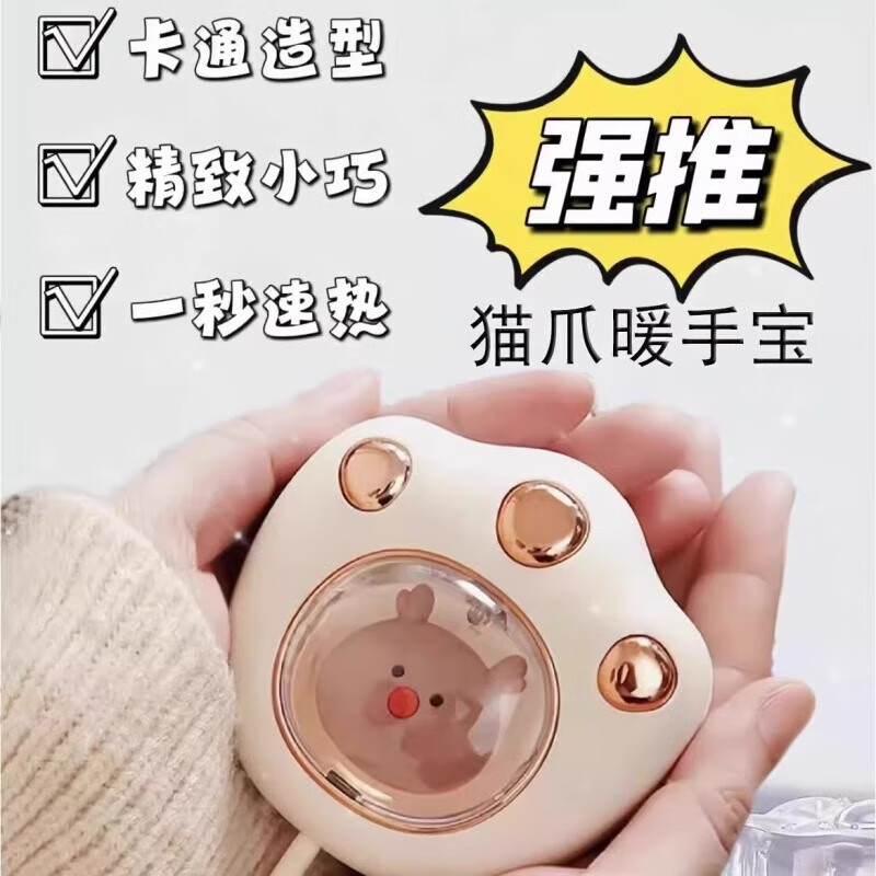 新款猫爪迷你暖手宝便携随身女学生充电式上课手握暖宝宝取暖神器 猫爪暖手宝1个
