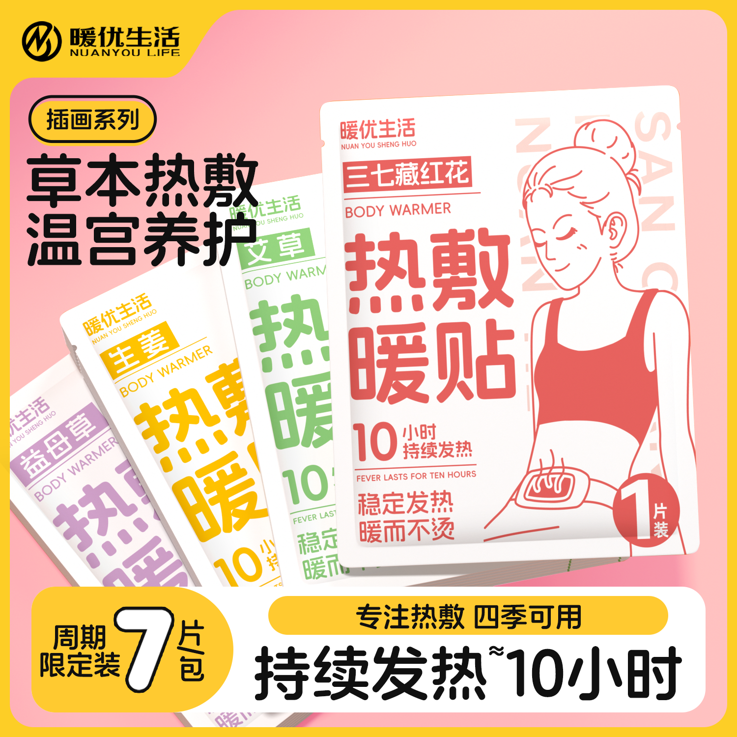 ⭐草本暖宫⭐暖宝宝 暖贴暖腰暖腹 舒缓姨妈不适期保暖学生寒冬季 生姜暖身贴(保暖散寒 舒缓不适期) 7片1包装
