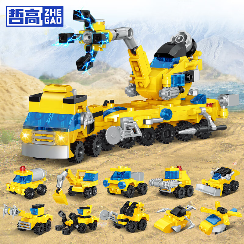 哲高城市工程车挖掘机可合体拼装汽车积木儿童玩具男孩生日礼物 铲车+直升飞机(2盒独立装)