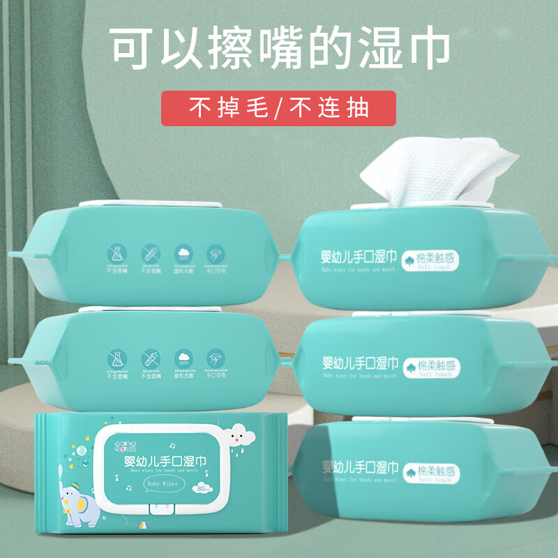 15包婴儿湿巾宝宝专用加厚大包卡通小象 80抽 5包
