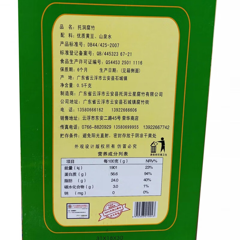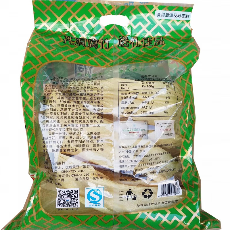 OLOEY包装食品肇庆云浮特产托洞腐竹1斤装/袋送礼佳品无 彩袋腐竹一斤
